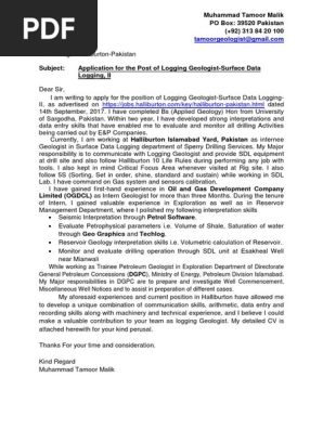 Cover Letter Halliburton : Do you know how to write a cover letter?. Writing an open cover letter. Cover letters are your first impression, so make it a good one. This is the perfect way to express how your specific skills are relevant to the open position. A cover letter serves as a formal introduction to your resume, and allows you to expand on various aspects of your work history. A cover letter can also help you make a generic resume appear more tailored for t.